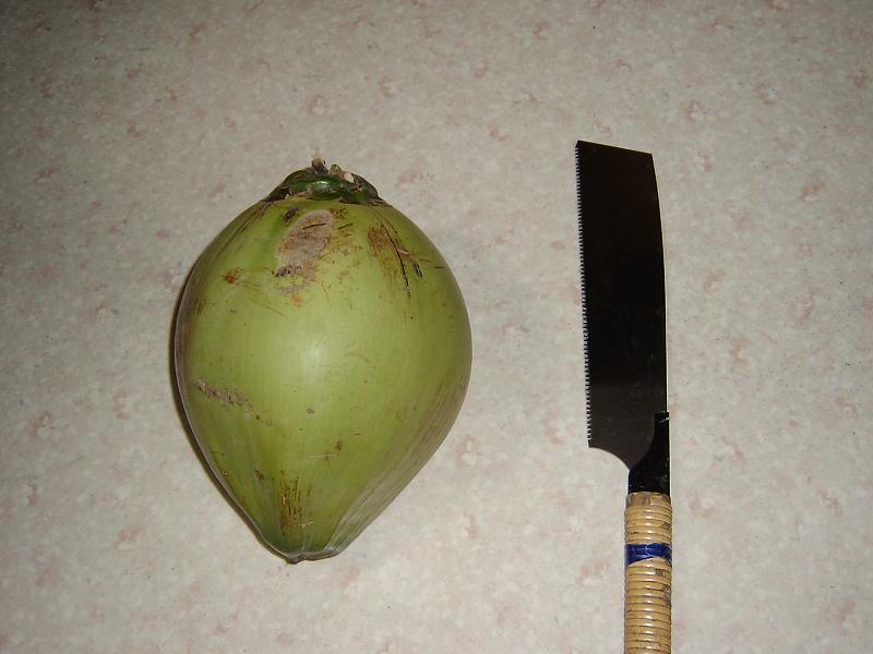 まあ、理由は簡単。自分で買ってきたからだ。一言で言うと衝動買いというやつである。さいたま広しと言えど衝動買いで椰子の実を買って来るヤツなどそうはいまい。しかしよりによってなぜ椰子の実なのか。我ながら訳が分からない。自分のしてしまったことに対する不条理さを前に、“なぜ”なのかを問わずにはいられない。理由を神や前世に求めてみたが、一向に埒が明かない。