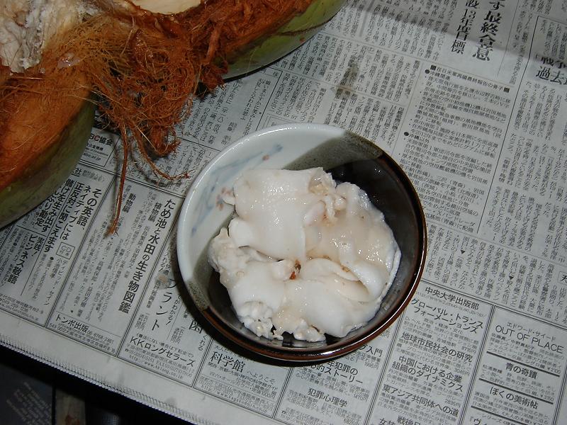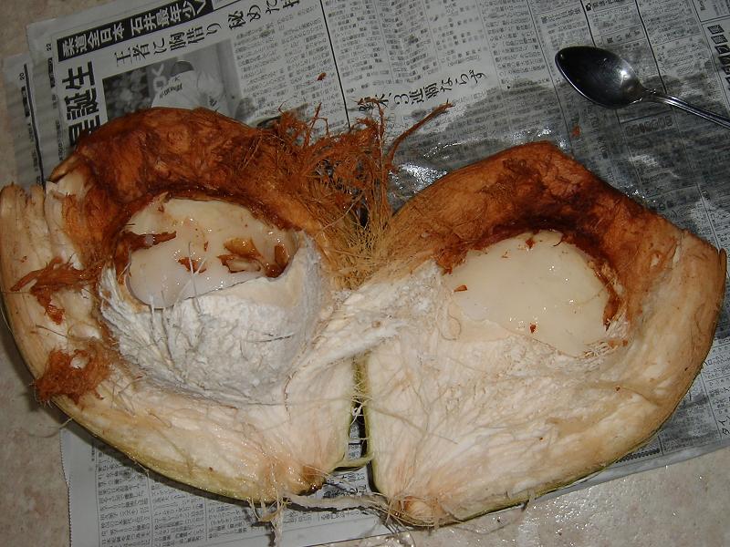 ちょっと不気味だ。これがココナッツミルクなのだろうか?何か違うような気もする。そもそもこれって食べられるかどうかすら怪しいではないか…。